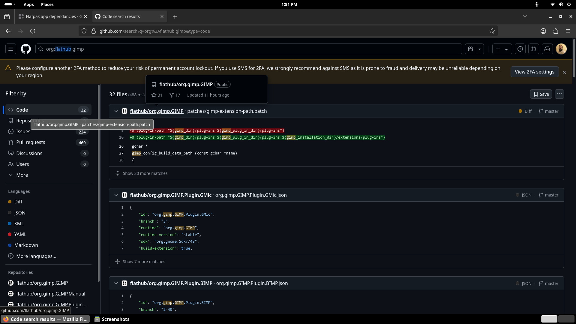 - Gimp in particular has a lot of plugin repositories at flathub separate from the app itself. The one I highlighted in the screenshot is the app. See how it has a part that says “org.gimp.GIMP”? That is the APP_ID mentioned in an earlier answer. Click on it at github.