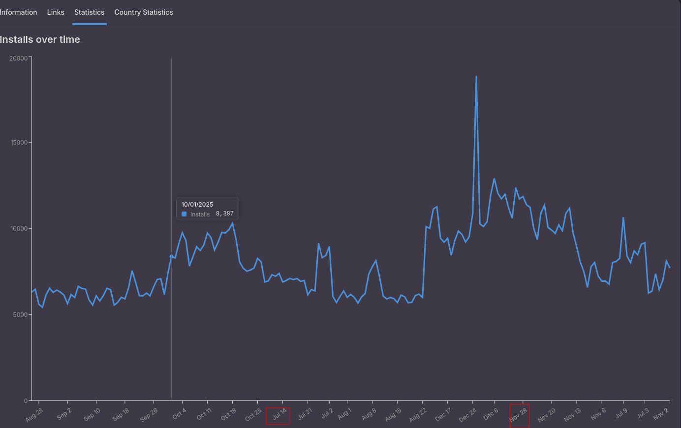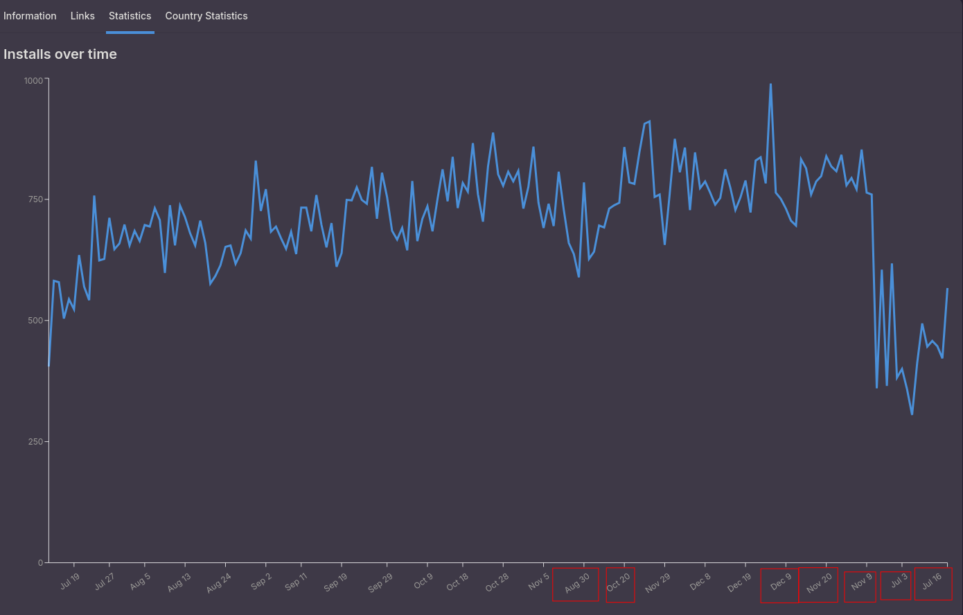 On Flathub Pinta’s page scroll down to the bottom and click on Statistics and the following is displayed: